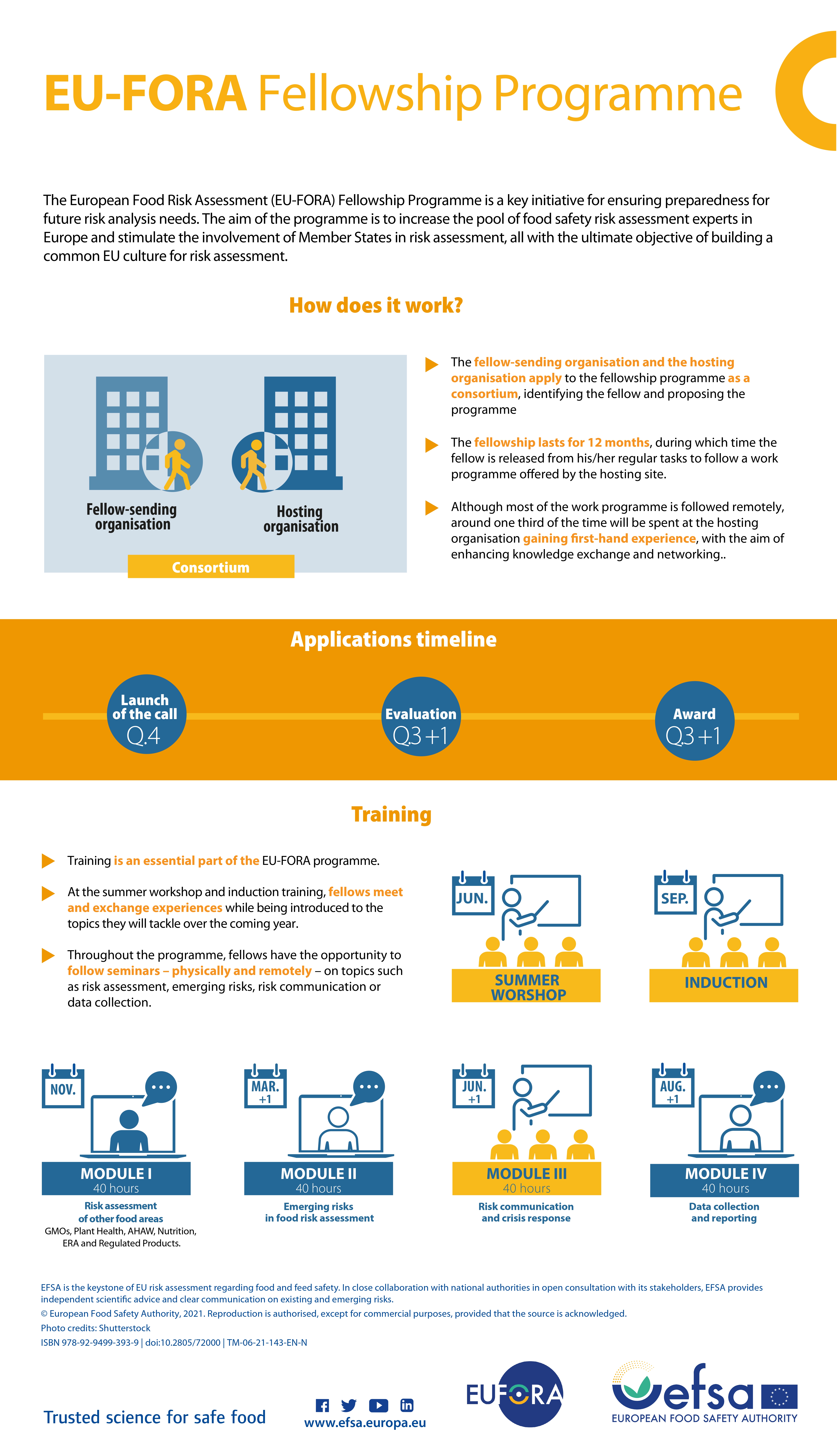 Стипендиантската програма EU-FORA е ключова инициатива на ЕОБХ, която има за цел изграждане на капацитет за провеждане на научна оценка на риска за безопасността на храните на ниво ЕС. Насочена е към млади учени от държави-членки на ЕС, Норвегия и Исландия.